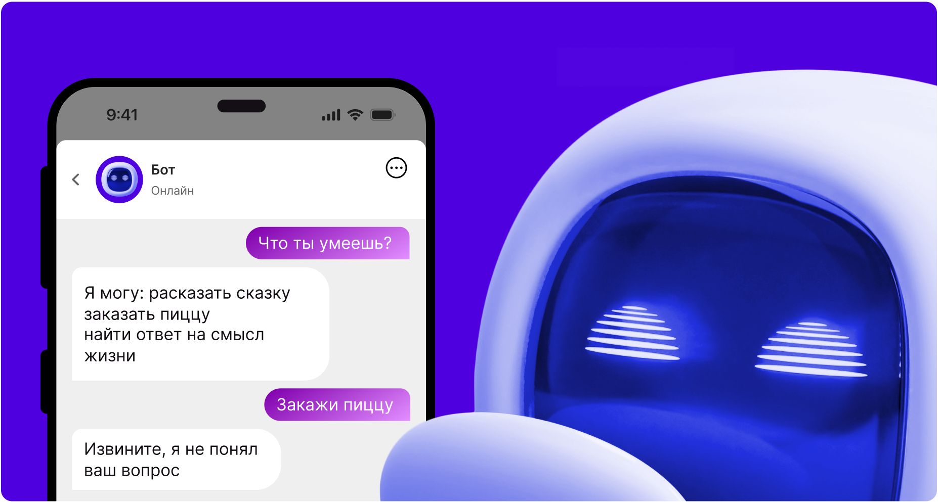 Представьте, что вы звоните в магазин, автосервис или другую компанию и попадаете на автоответчик. Однако вы не просто слышите запись: робот задаёт вопросы, понимает ваши ответы и выполняет команды. Например: